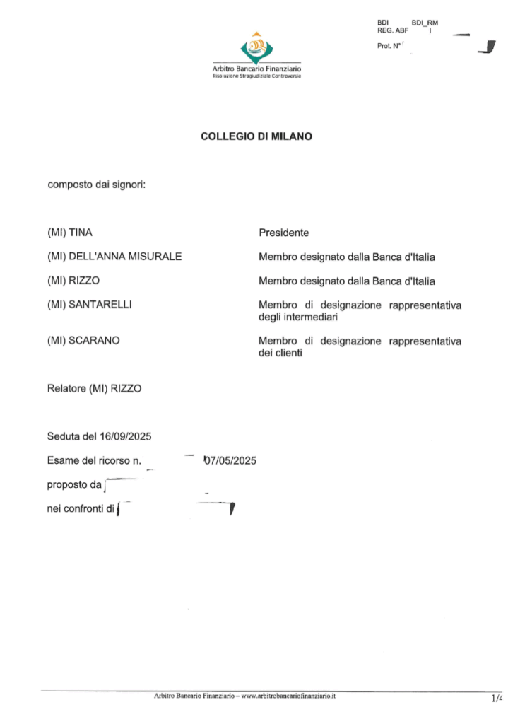 Il mio commento alla decisione del Collegio ABF di Milano:
